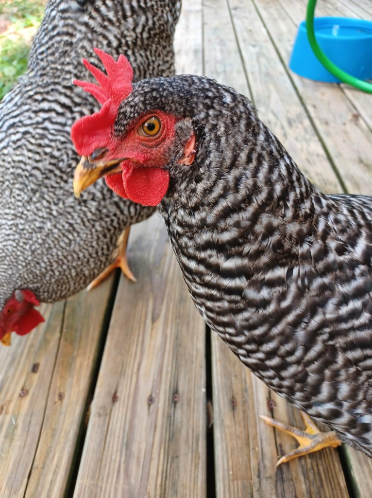 Having backyard chickens has taught me so many lessons, especially about joy. Chickens approach every single day with enthusiasm. When the sun is up they are ready to run into the morning full steam ahead. They see every day for what it is, a blank canvas just waiting to be colored with happiness. Watching them carry on their day to day activities I’m instantly transported and enamored by their playfulness and curiosity. They have improved the quality of my life immensely not just with their amazing eggs and pest control, but with their effortless charms. They never fail to bring me a smile no matter how distracted or preoccupied I am. Watching them, all the worries of the world melt away and all that is left is joy. Pictured above, Cleopatra and Chuck.