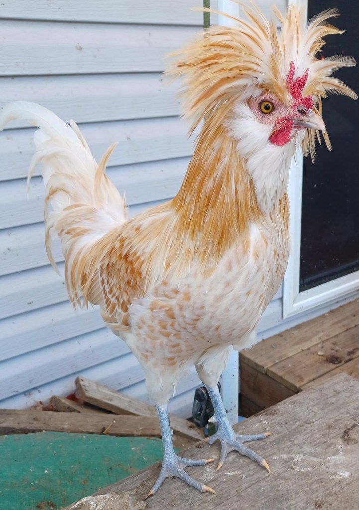 This is Jules. He’s a polish buff laced rooster. Jules hates to be touched. I felt compelled to blog a second time this week to give the disclaimer after my last post extolling the virtues of hands on training for friendlier roosters. Even within my own flock, one size does NOT fit all. Like so many other things in life, one formula, even a very effective one, will not be suited to all individuals. The same training and handling techniques which resulted in the amazing and very pick-up-able rooster that is Chuck utterly and completely failed to have any impact on Jules. The trainability of an individual bird is determined by many, many factors not the least of which is the bird’s given personality. From day one, Jules hated to be handled. Sometimes chicks that don’t like to be handled in the brooder may warm up to you once they are in their own space and have gained the confidence that comes with adulthood. No. Not Jules. From the beginning, Jules hated being handled, to the extent we thought temporarily he may have some sort of medical issue. No. Not a thing wrong with Jules physically. He is a healthy, vibrant, active, energetic, fun, beautiful rooster, who hates to be touched with every fiber of his being. He has since he was a fluffy puffy headed chick. Even though I’ll never be able to pet him I happen to deeply love Jules. I watched him lovingly attend one of our hen’s that was recovering from any eye injury, what we deduced was a mating attempt gone wrong. As she recovered, it was Jules who was at her side daily, grooming her and keeping her company, very aware she did not feel quite herself. In addition to being a kind rooster, Jules has so much personality and is truly just a stunning bird to behold when he does his strut in a sunny backyard. He has never once attempted to flog or pinch me. Because he would have to touch me to do those things and it’s just not worth it. I always appreciate his consistency. Jules will always be beautiful. He will never want to be touched. And that is OK.