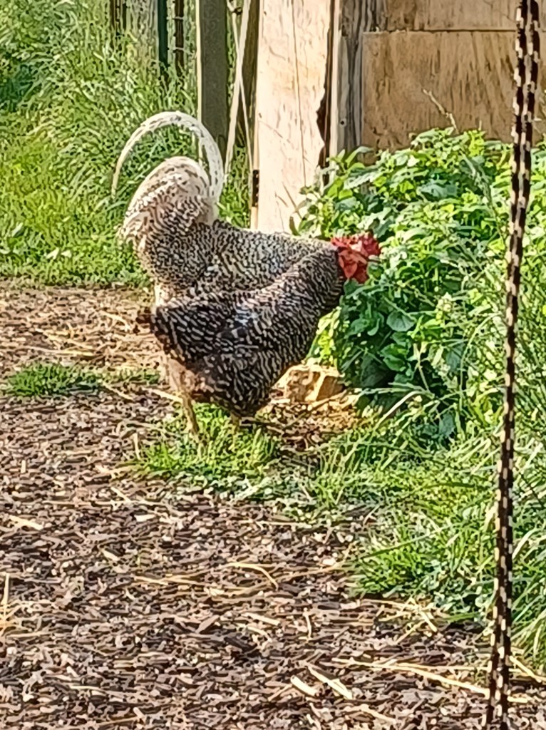 Know the signs of heat stress in your birds! Chickens that are too hot have gaping mouths, pant, and hold their wings away from their bodies. If you see your chicken making an expression that looks like this < , they’re uncomfortable or stressed.
