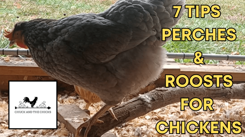 Material matters. Wood is the appropriate material for backyard chicken perches either lumber or natural branches. Materials like metal and plastic can result in frostbite on your chickens’ feet. Plastic when exposed to sun weathers and can disintegrate unexpectantly causing injury.